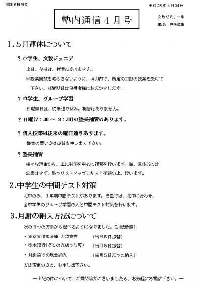 TOP›文教ゼミナール通信›いままでの塾内通信載せました(1)