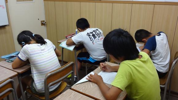 文教ジュニア6年生の学習風景1 夏期講習の前半が終わりました。 つまり、夏休みも半分終わったということです。 学校の宿題は順調に進んでいるでしょうか? 文教ジュニアの生徒たちは、夏休みの宿題の読書感想文を、 先生と一緒に奮闘しています。 後期からの参加も受け付けておりますので、 興味のある方はお気軽にご連絡ください。 文教ジュニア6年生の学習風景2